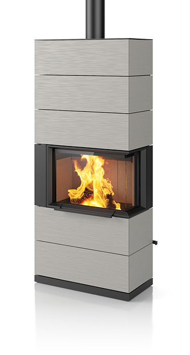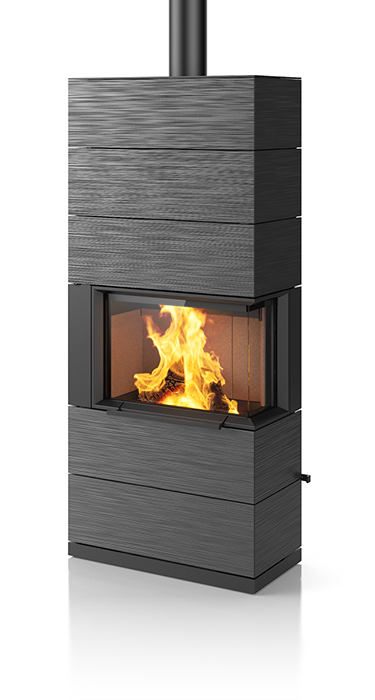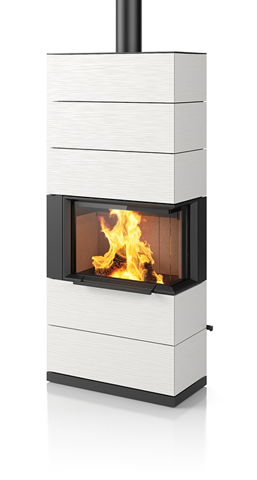 Plenty of room for the beautiful dancing flames. That makes the impressive PADUA a very unique stove. Its sophisticated design concept includes a sliding door that conveniently and easily opens upwards. The matching shelf system not only provides plenty of space to store wood, it can also be used for side connections to the chimney flue. The handcrafted ceramic in elegant textures and selected colours enhance the exclusive appearance of this special stove. Upon request, the PADUA can be equipped with a heat-retaining block. It is available in two heights.